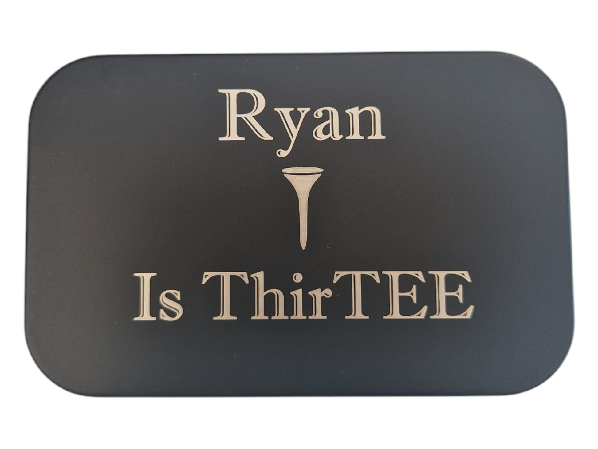 Celebrate a milestone with these personalised 30th birthday golf tees, presented in a personalised black tin.