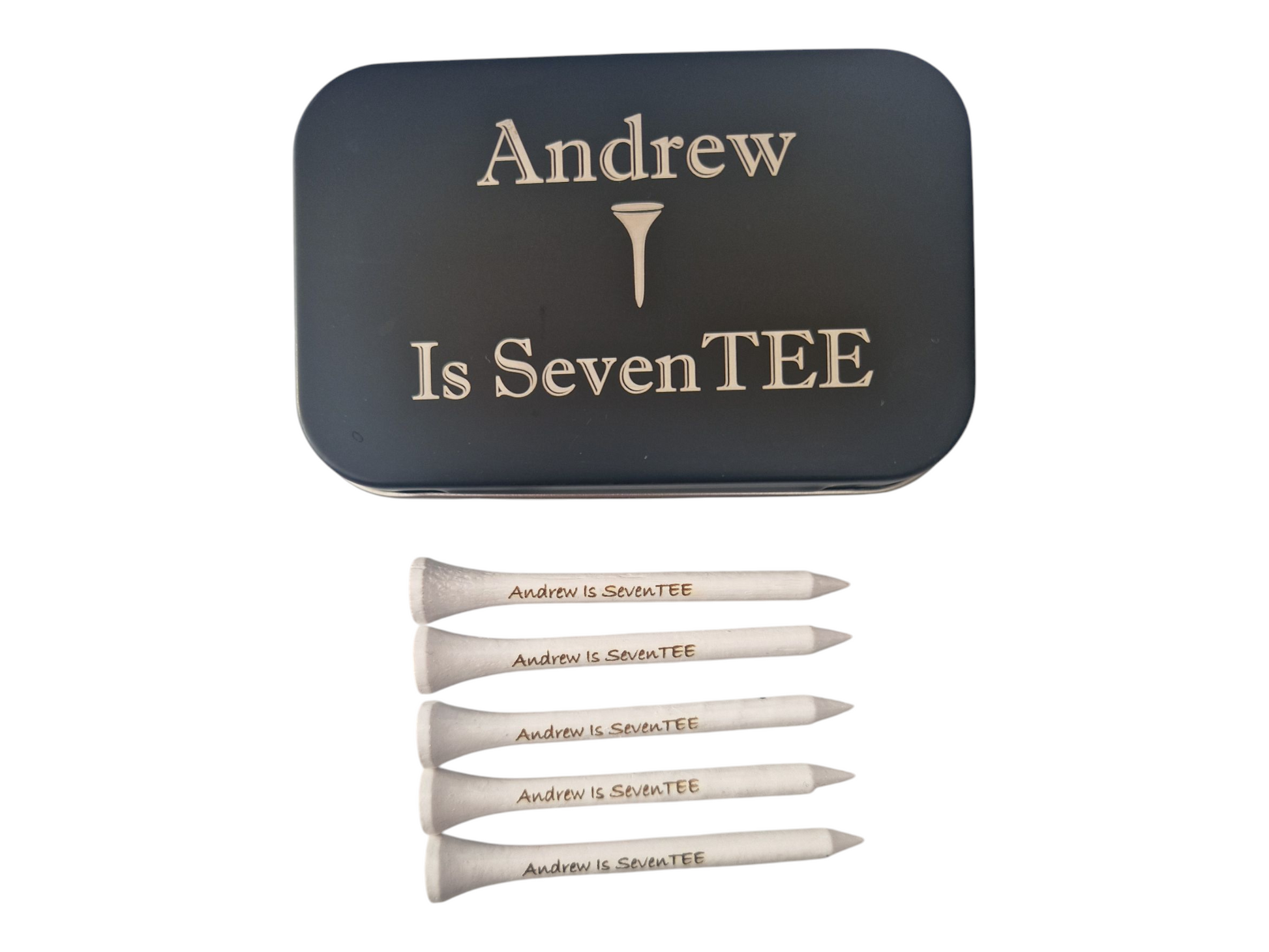 Celebrate a milestone with these personalised 70th birthday golf tees, presented in a personalised black tin.