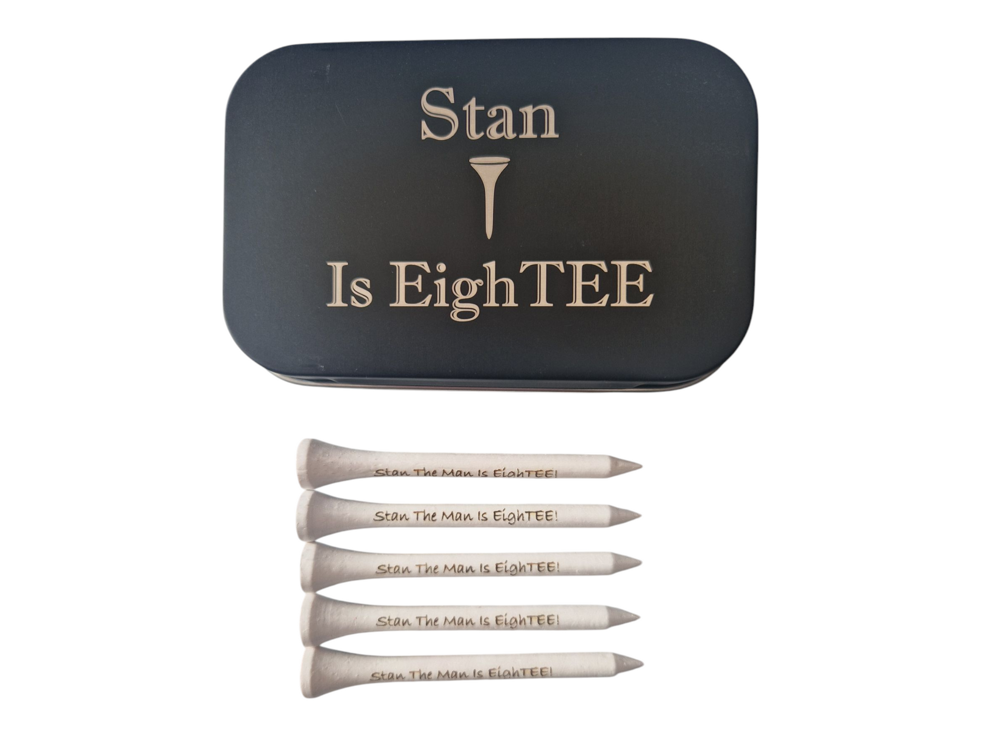 Celebrate a milestone with these personalised 80th birthday golf tees, presented in a personalised black tin.